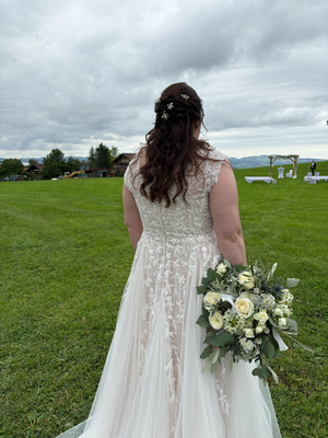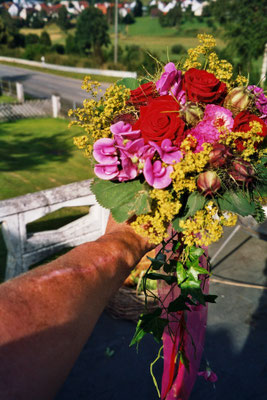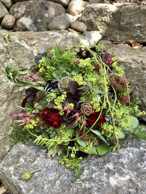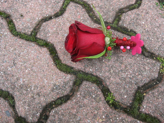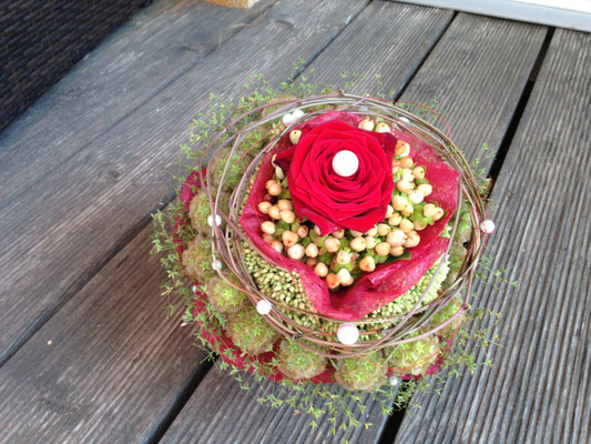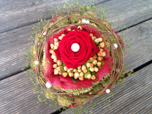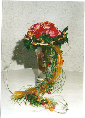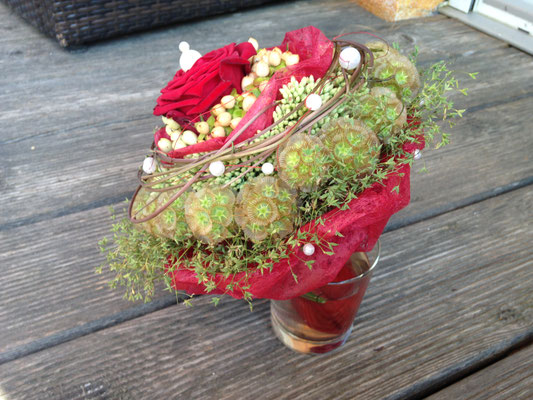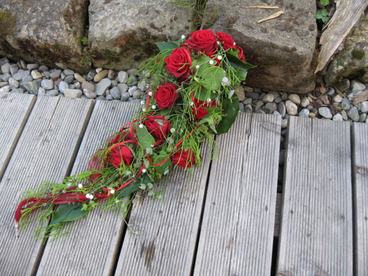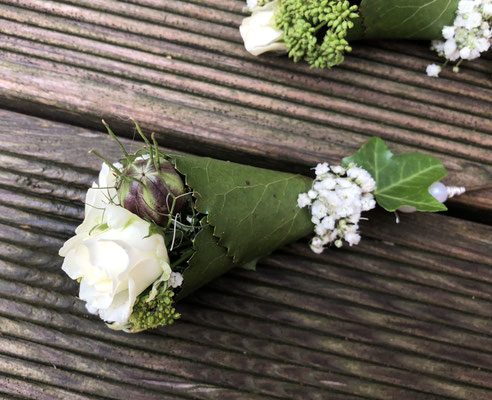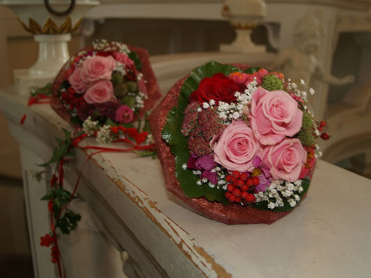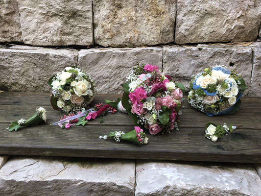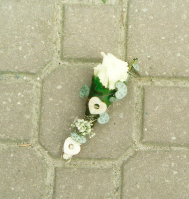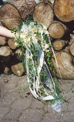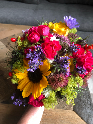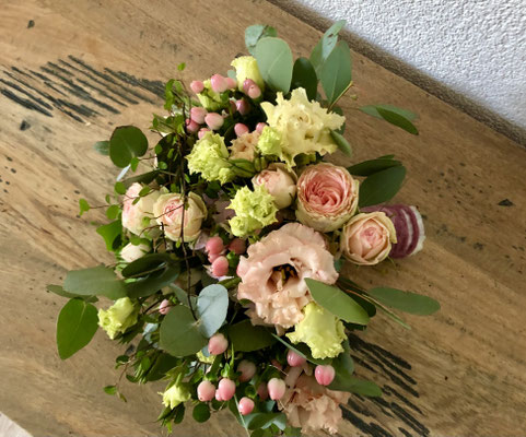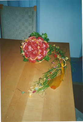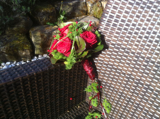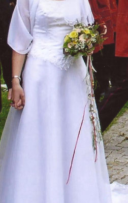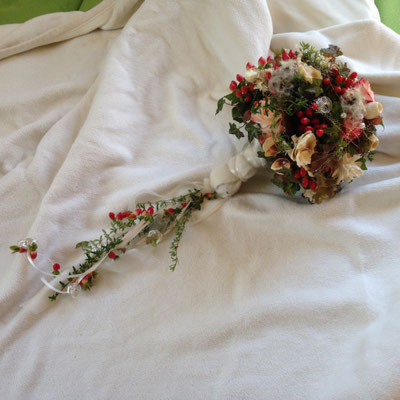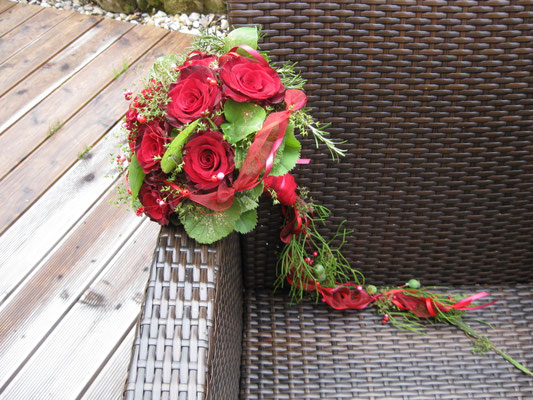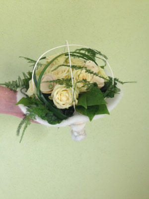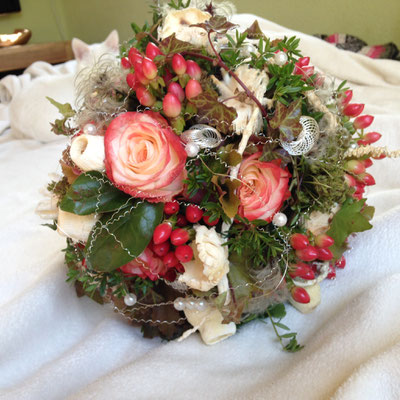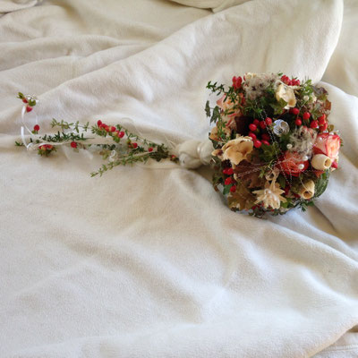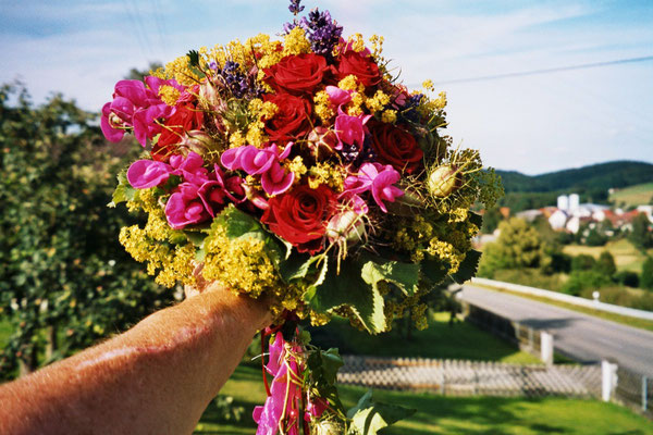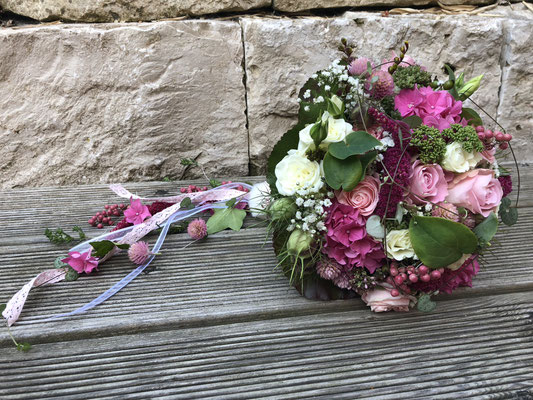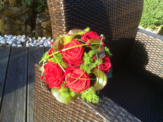 Der Brautstrauß soll von Stil, Form und Farbe einzig und alleine zur Braut passen. Er soll das Bild der Braut vervollständigen. Die Farbe und der Stil der sonstigen Hochzeitsblumen soll hier keine Rolle spielen.